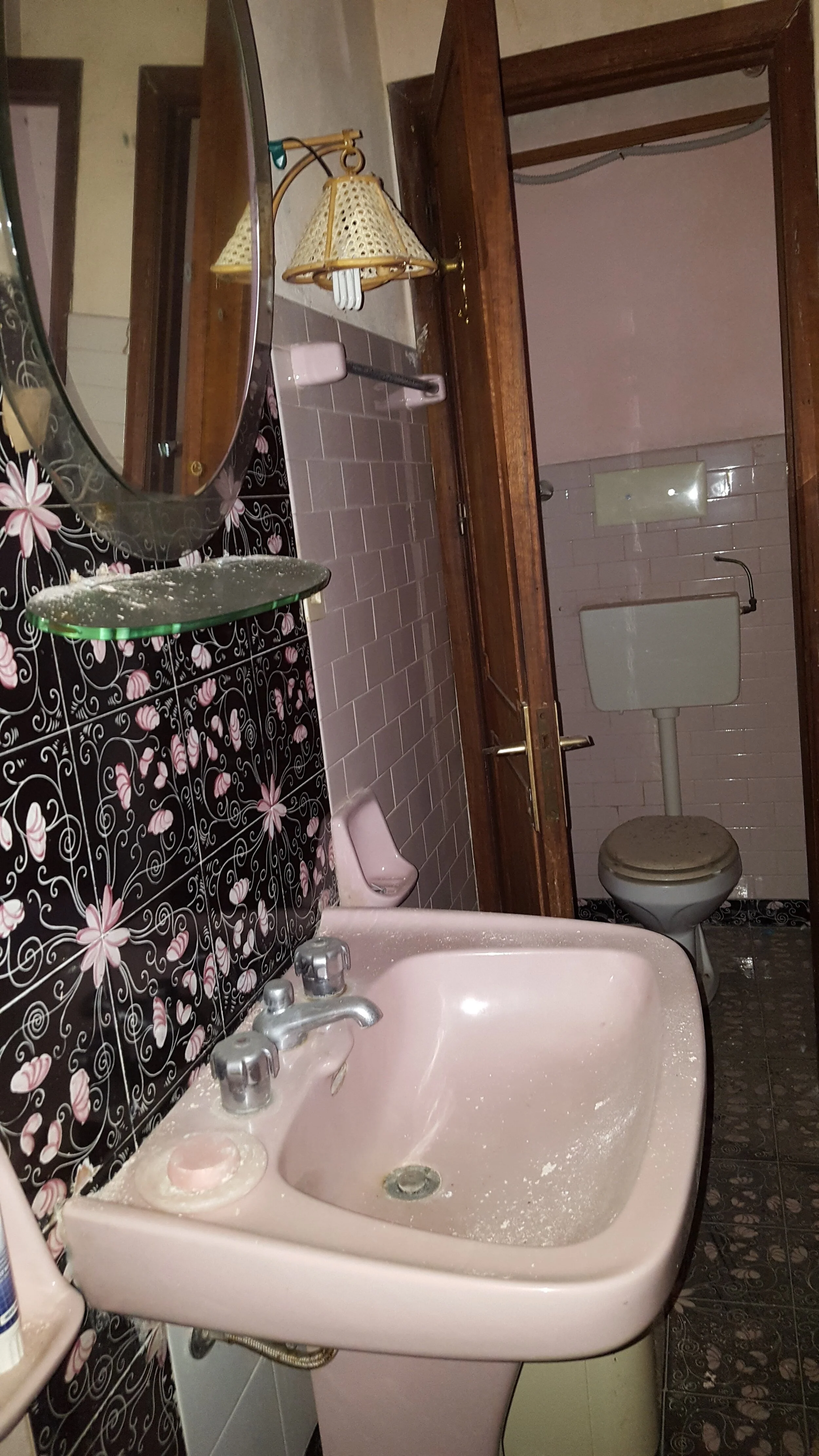 We ripped out the black and pink bathroom and eliminated the separate water closet, which was oddly open in the ceiling up to the roof! Our reconfigured floorplan allowed us to make room for a separate laundry and utility closet.